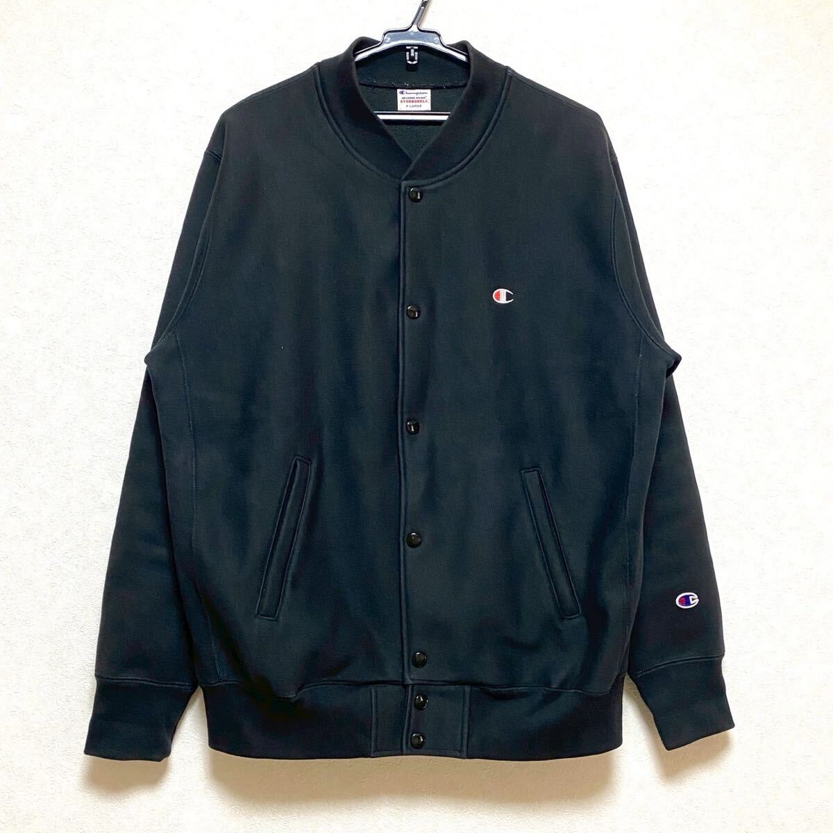 - 【美品】チャンピオン Champion リバースウィーブ STORMSHELL XL ブラック 黒 スタジャン風 刺繍ロゴ スウェットジャケット メンズ 秋冬