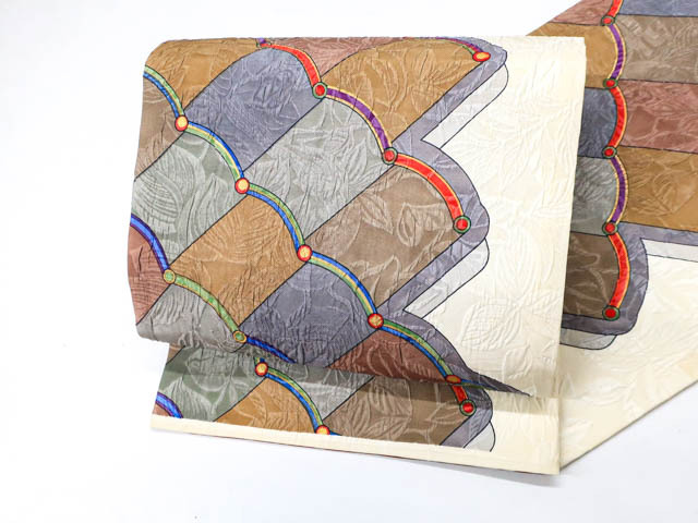 > 《京都一輝堂》【着物】袋帯 ふくれ織 全通柄 瓦文 25b01-72