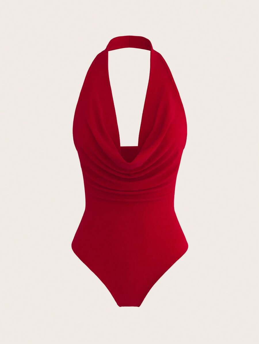 - ボディスーツ レディース スプリングブレーク アウトフィット ソリッドカラー ノースリーブ バックレス ボディスーツ、ミニマリスト