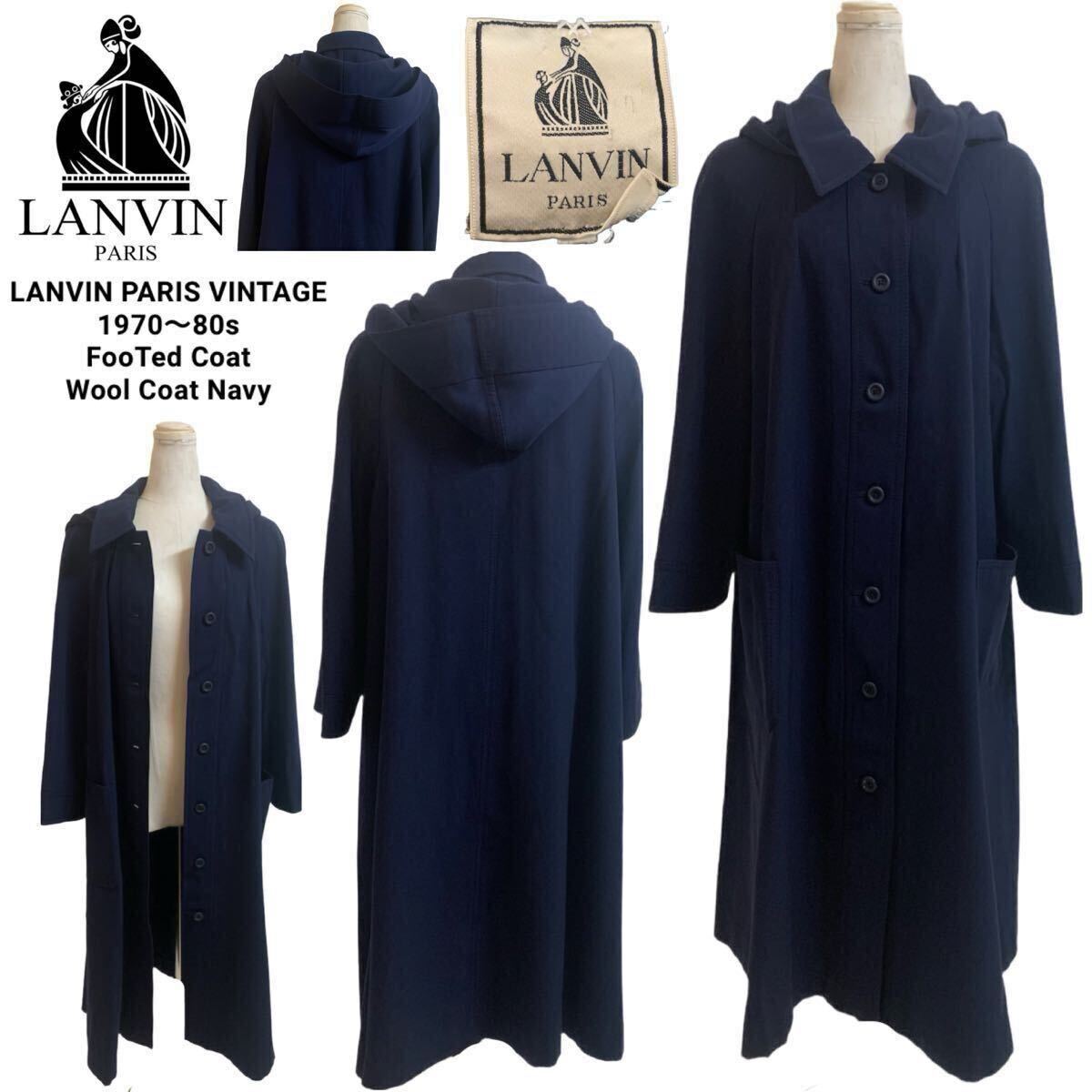 > LANVIN PARIS VINTAGE ランバン パリス ヴィンテージ 1970〜80s ロングコート ウールコート フード付 (取り外し可能) ネイビー アーカイブ