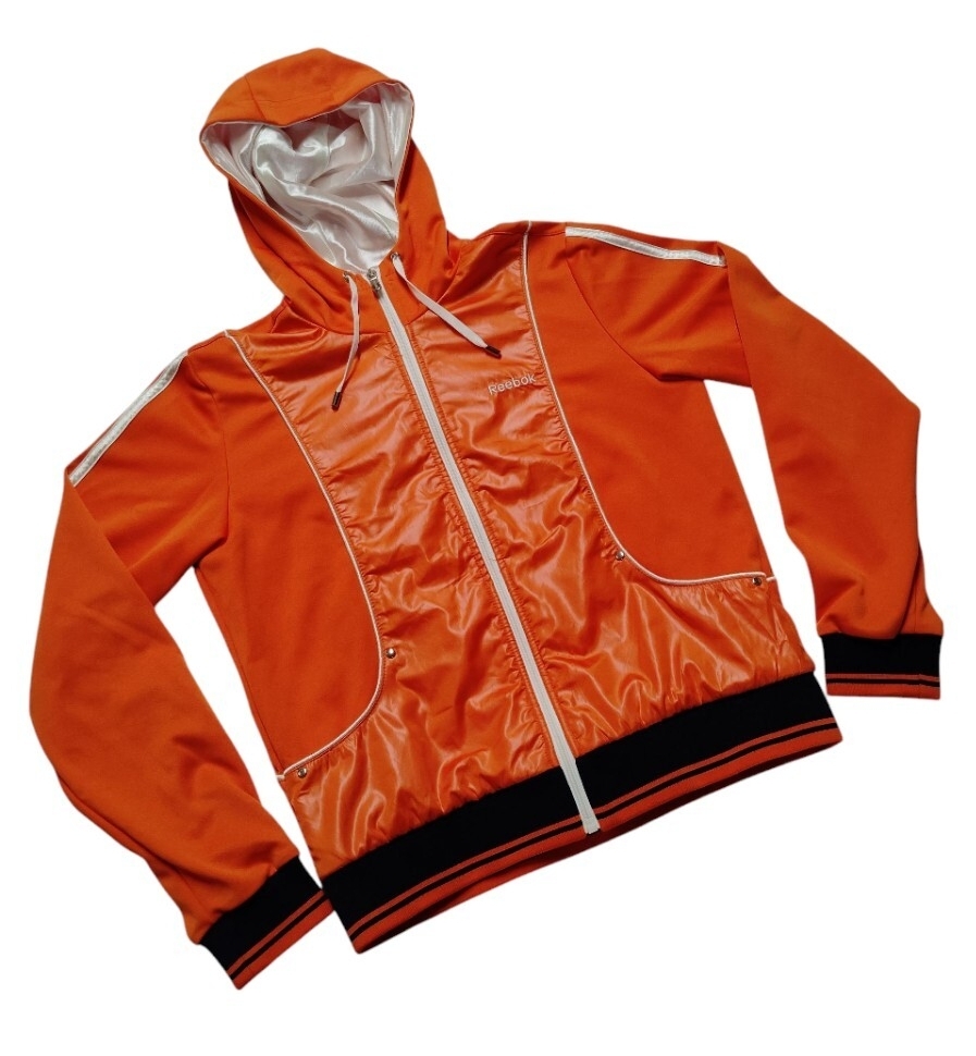 > (sp93)Reebok リーボック フード付きパーカー ジップアップ オレンジ系 アウター S〜M程度 古着 希少 匿名配送