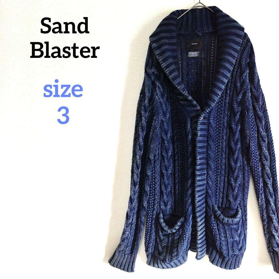 - SandBlaster by attack the mind 7 サンドブラスター ケーブルニットカーディガン ダメージ加工 インディゴ 羽織り ブルー ネイビー