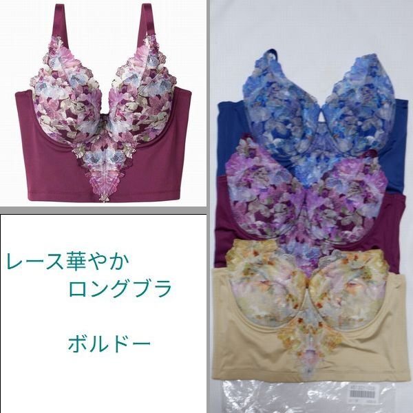 - Last B85 脇高背中すっきり着やせ レース華やか ロングブラジャー ボルドー 大きいサイズ