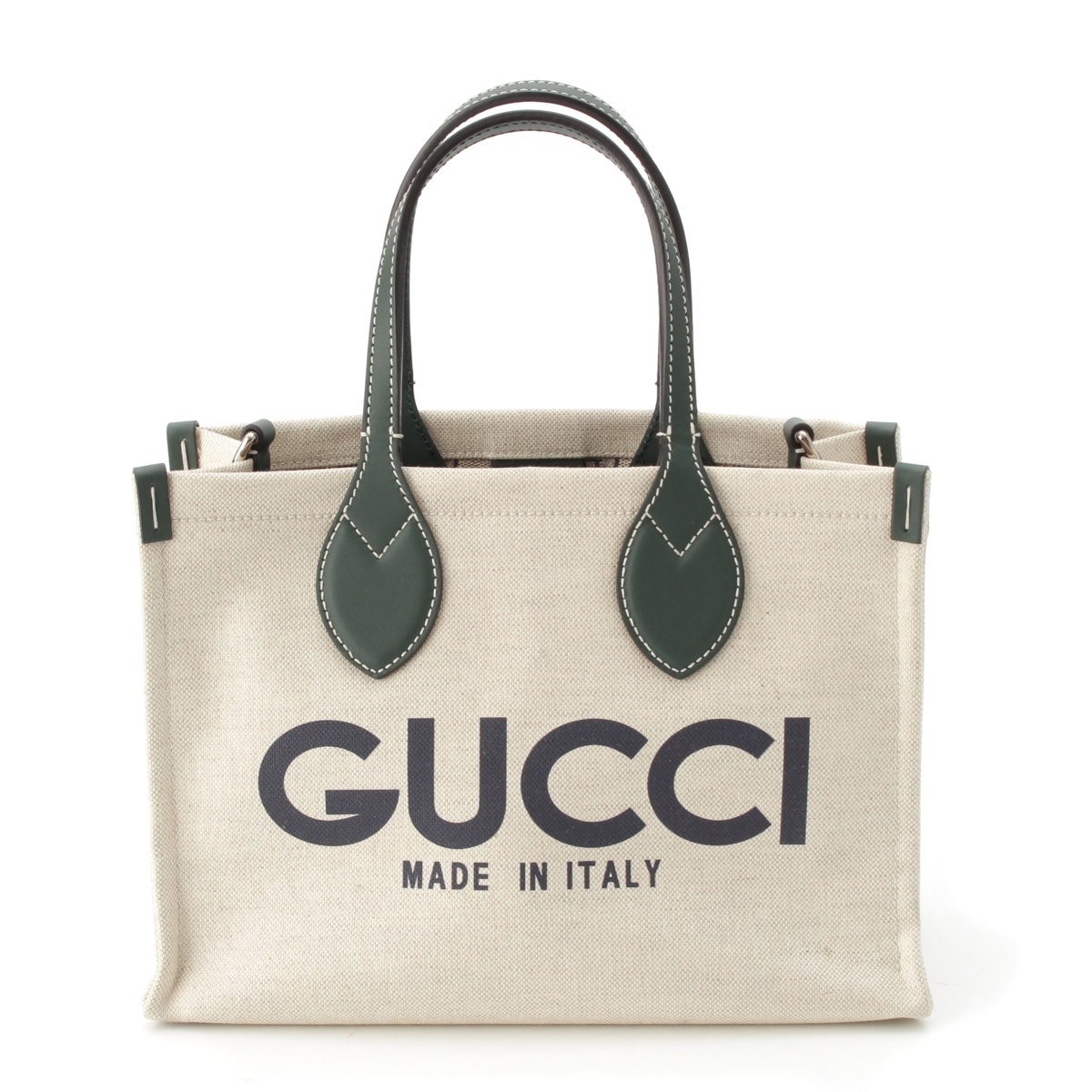 > グッチ キャンバス×レザー ロゴプリント 2WAY ショルダー ハンドバッグ グリーン×ブラック×ベージュ【中古】