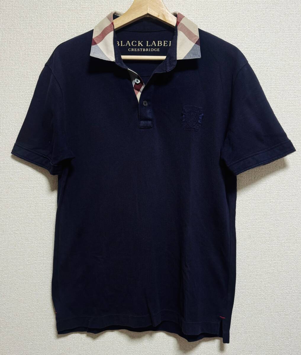 - 美品 サイズL ブラックレーベルクレストブリッジ チェック 切替 ポロシャツ BLACK LABEL CRESTBRIDGE 紺