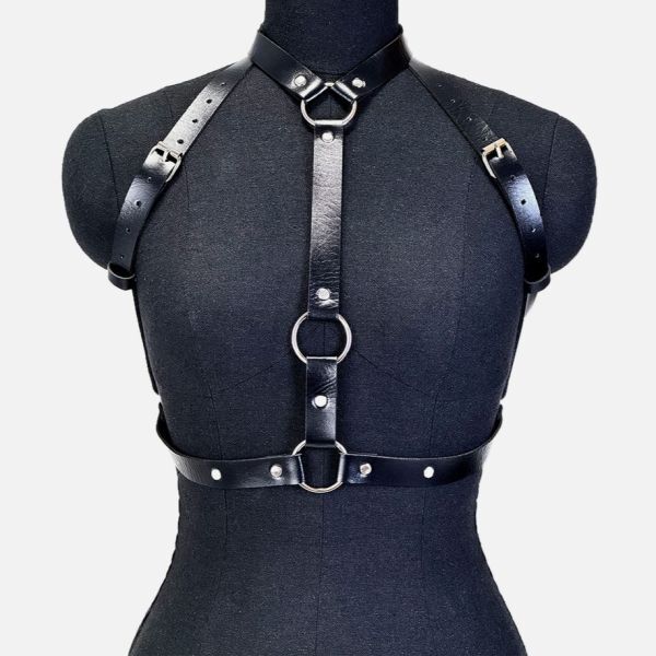 - 上半身ベルト5シルバーリング付 チェストハーネスベルトサスペンダー装飾パンクロックレザーゴシック衣類アクセサリー ★鄭11 [丨1[丨3