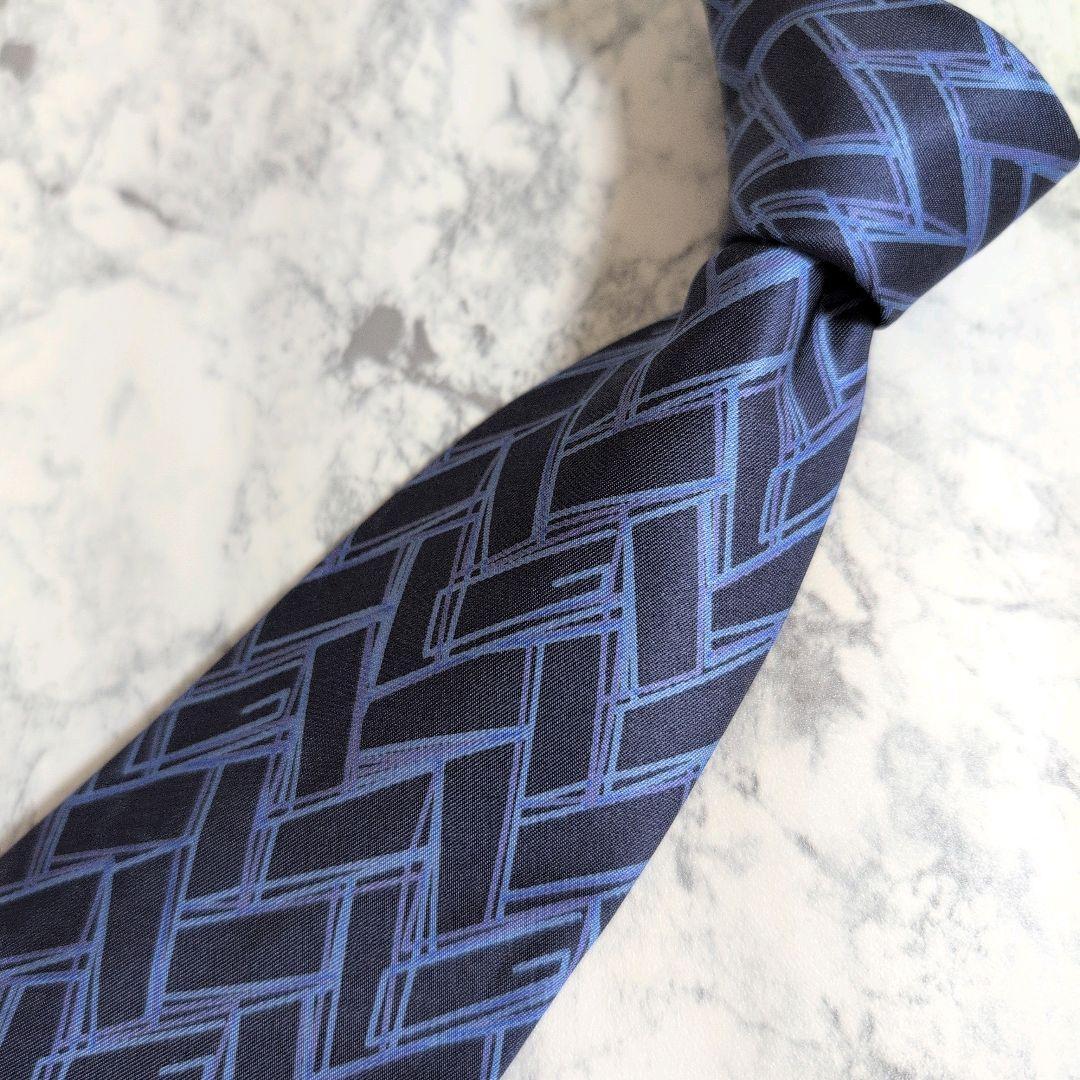 - 【極美品】GUCCI グッチ ネクタイ V字 総柄 シルク ネイビー