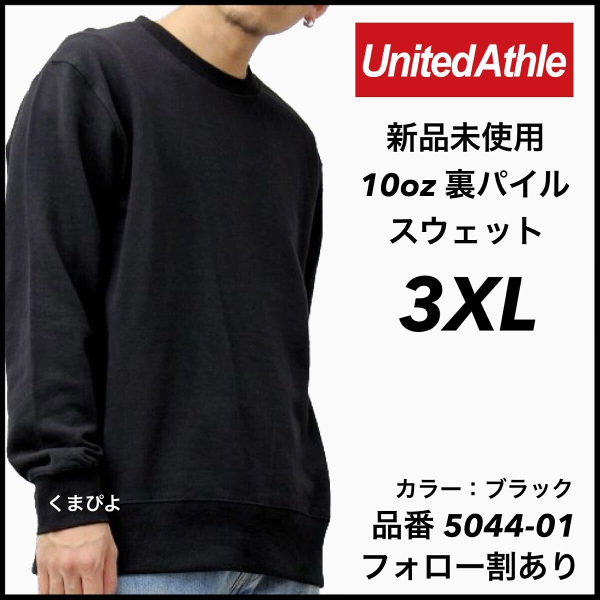 - 新品未使用 UnitedAthle 10oz 裏パイル 無地 スウェット 黒 ブラック 3XL サイズ ユナイテッドアスレ