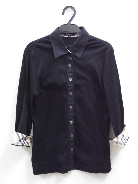 - ♪BURBERRY LONDON バーバリー ロンドン 三陽商会 レディース 七分丈 シャツ ブラック サイズ2♪USED品
