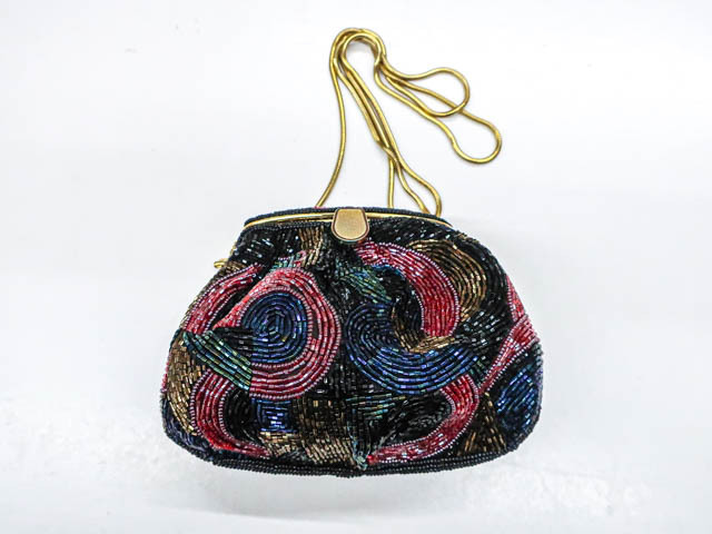 - 《京都一輝堂》【着物】 和装小物 アンティーク ビーズバッグ ショルダーバッグ 24w-7935