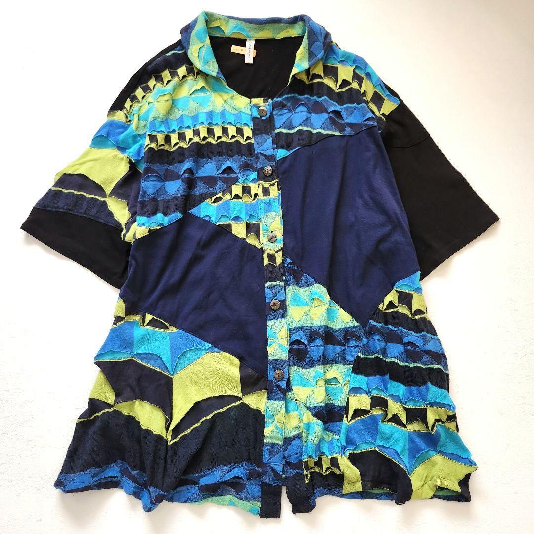 > 【即決 送料無料】◆いろふぶき彩吹雪 クレイジーパターン パッチワーク ニット プルオーバー 日本製 ネイビー ブルー