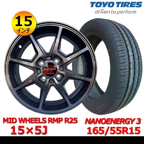 - 送料無料 新品タイヤ&ホイール15インチ4セット【MID WHEELS RMP R25 15×5J+45 100×4】【TOYO NANOENERGY 3 165/55R15 】MHOT-154