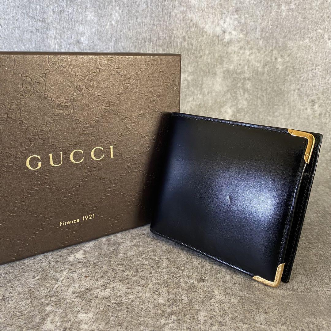 - 極美品 GUCCI グッチ 折り財布 2つ折り オールレザー 金具 ブラック 黒