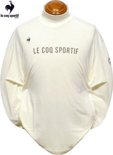 > 【アイボリー 3L】 ルコックゴルフ 長袖モックネックシャツ メンズ QGMWJB12 ストレッチ 裏起毛 保温 ハイネックシャツ 長袖ポロシャツ