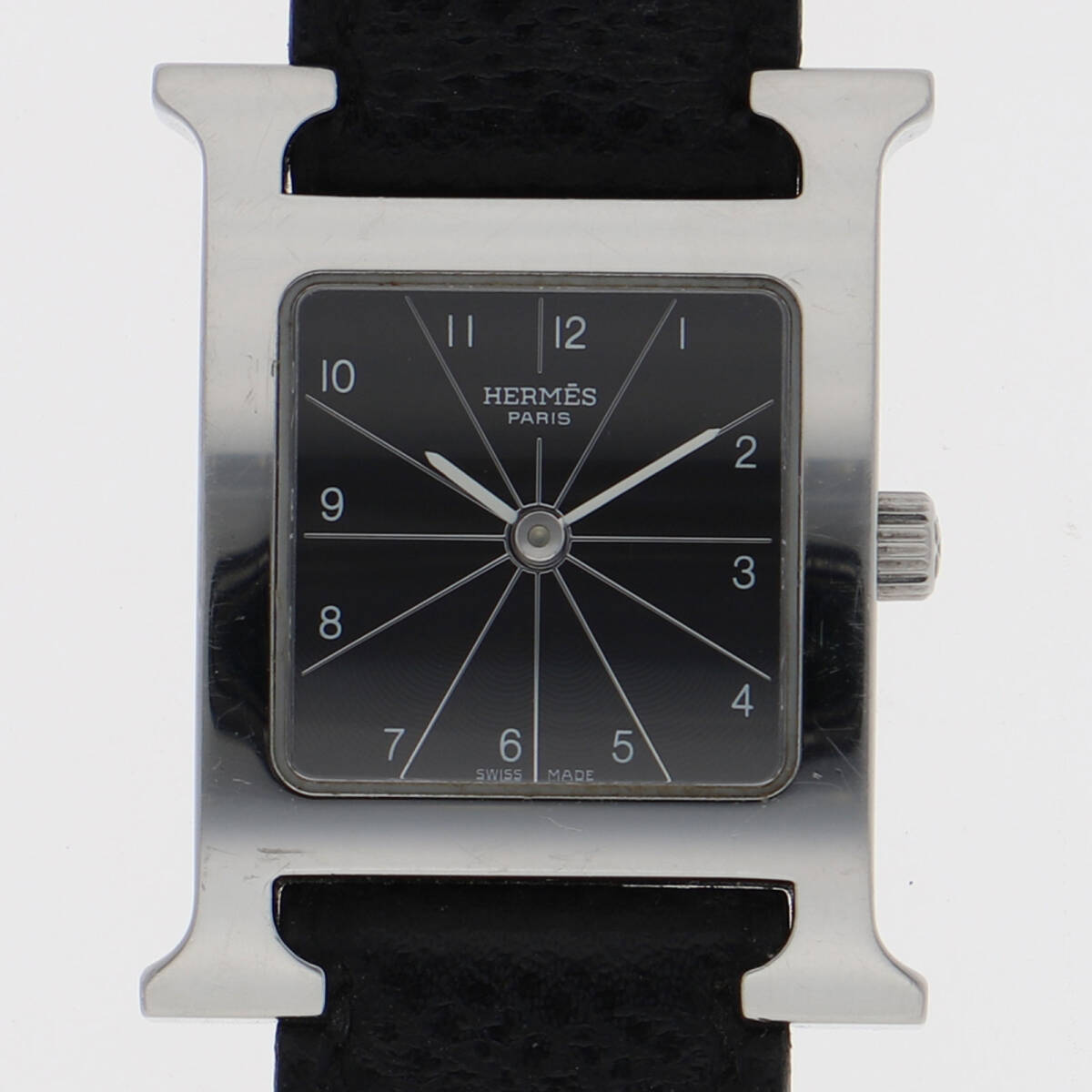 - HERMES エルメス HH1.210 Hウォッチ ブラックダイヤル SS/レザー クオーツ レディース【136497】