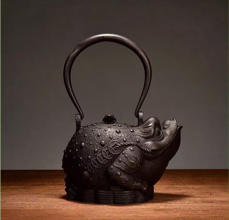 - 入手困難!高級鉄びん 手作り コーティングなし★老鉄瓶★金蟾獣急須