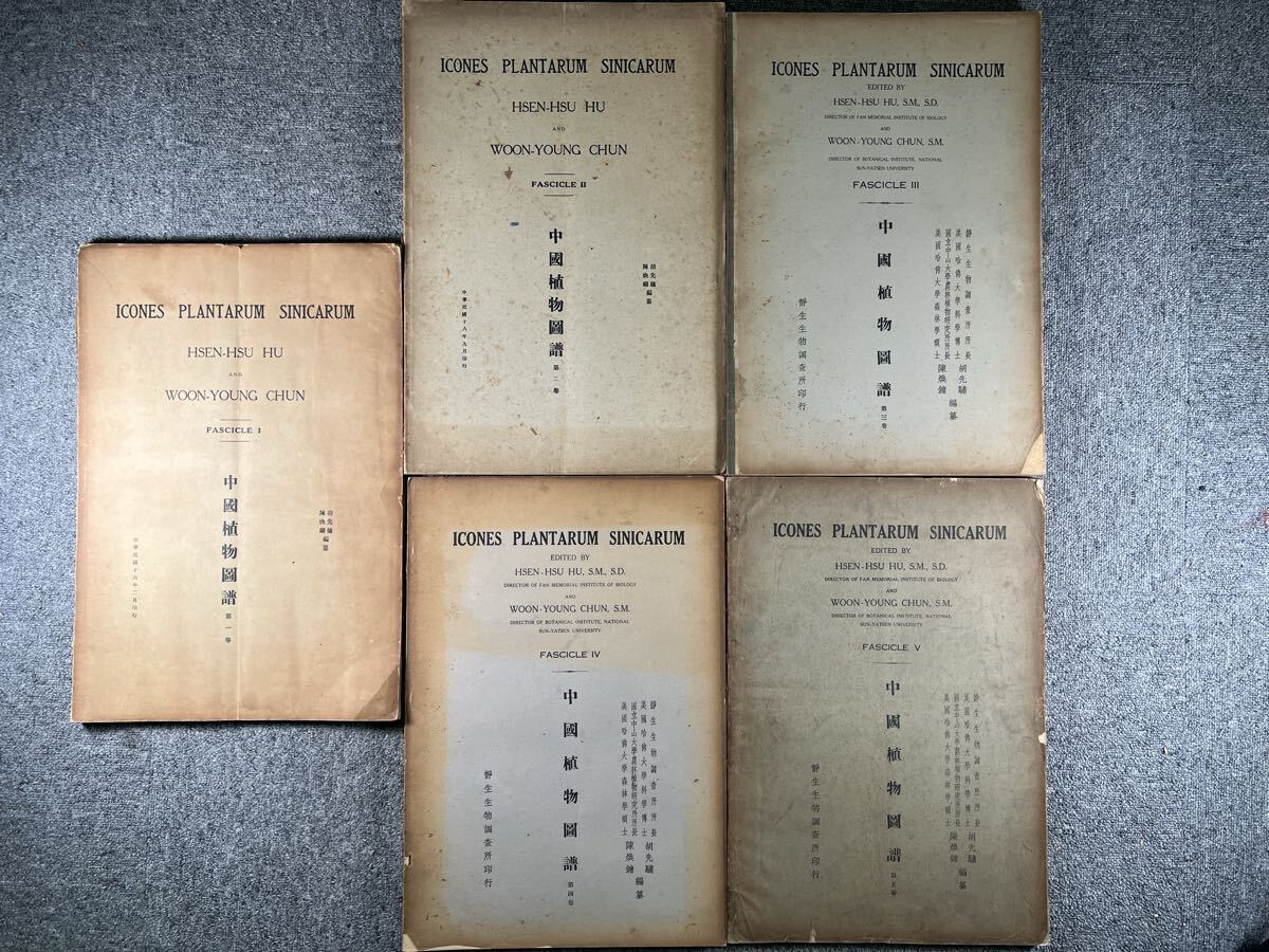 - 中国植物図譜五卷5冊揃、民国16年国立東南大学静生生物調所刊、西洋技法草木画図版250図、極大判、和本唐本漢籍古書中国