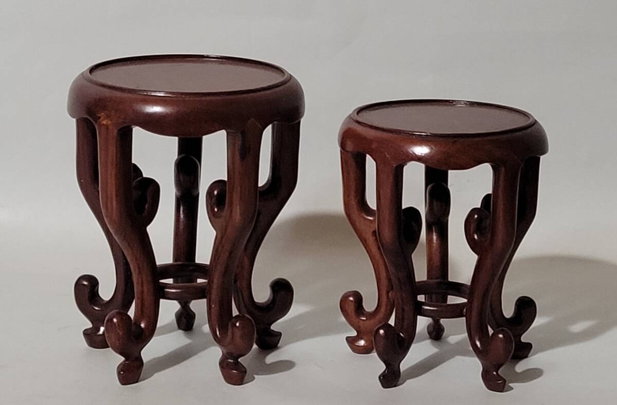 - 古美術柳 唐物 唐木小花台 二個 中国花台 香炉台