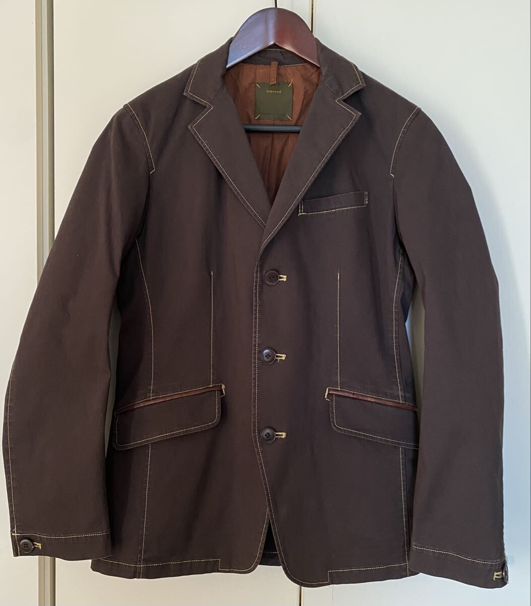 - 美品◆インブリード inbreed 厚手 コットンジャケット 本革使い メンズ 3 M位 セットモーム テーラードジャケット ブラウン
