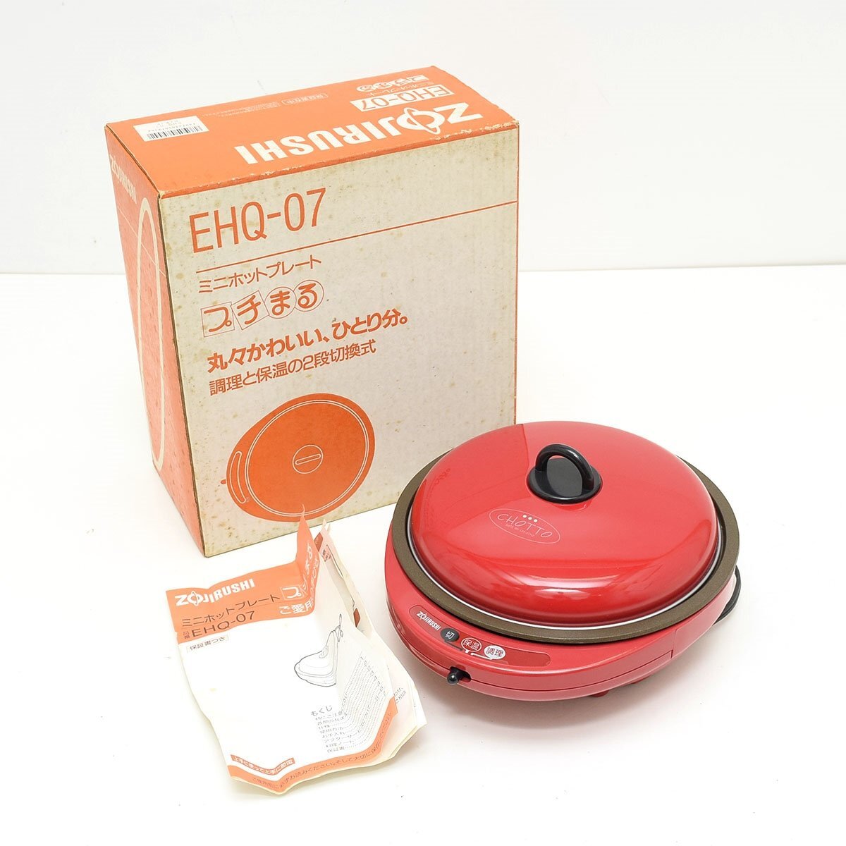 > ▽558654 未使用 保管品 ZOJIRUSHI 象印 ミニホットプレート プチまる EHQ-07 1人用 コンパクト 当時物 レトロ レッド