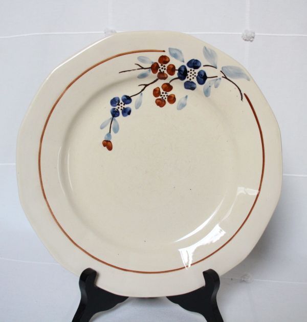 - フランス アンティーク サルグミンヌ 古い陶器のプレート ベージュ色 茶色基調の花模様 美品