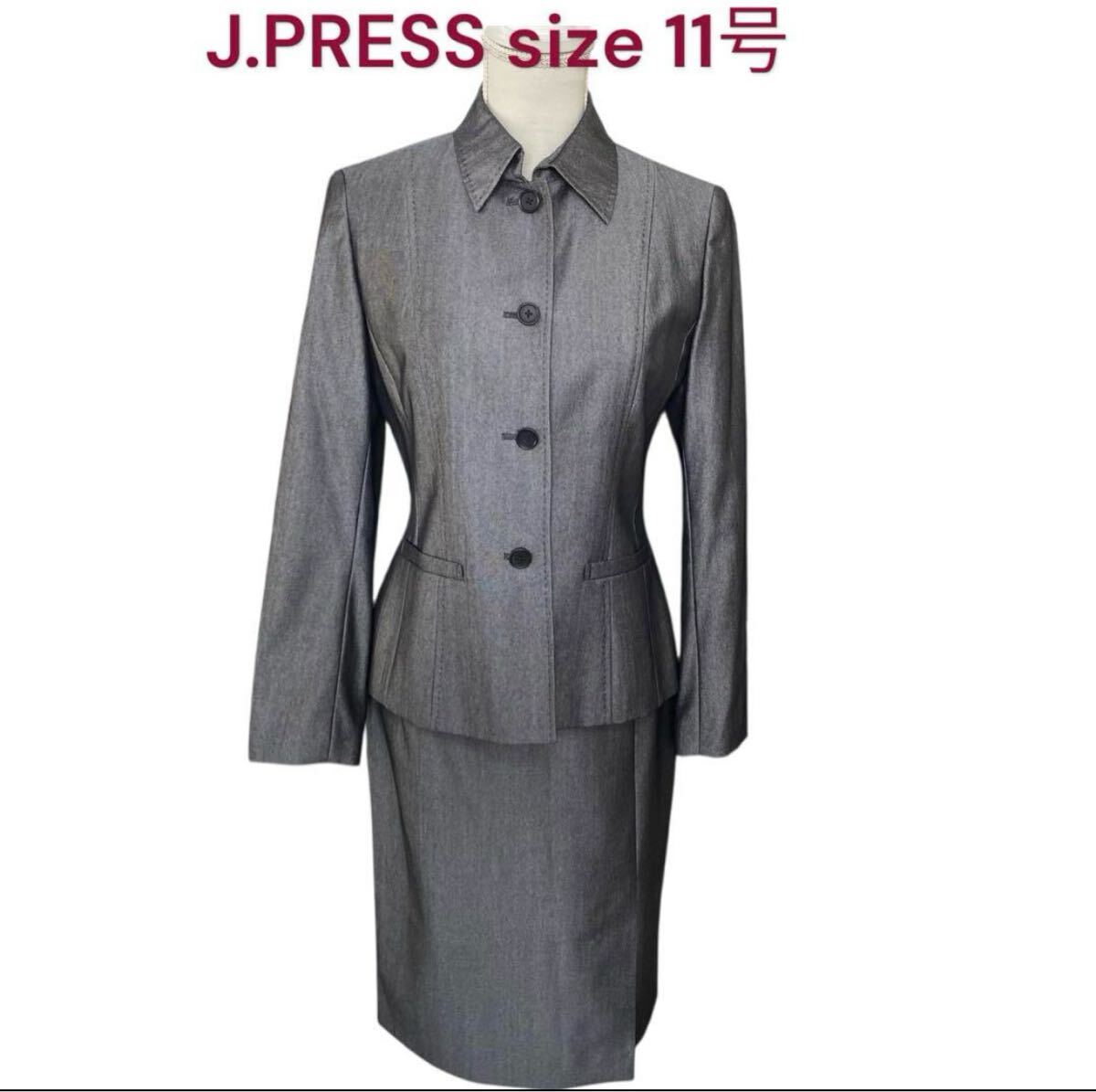 > 極美品 ジェイプレス 上品 ウール セットアップ スーツ 11号、L J.PRESS 11号、L グレー