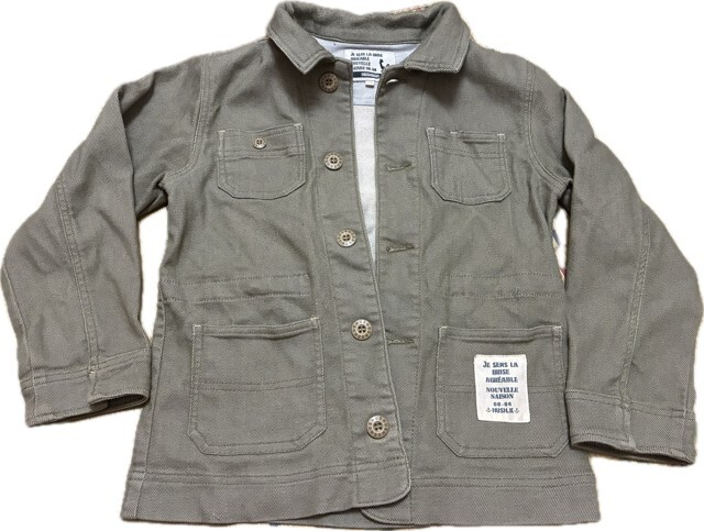 - 中古 HusHusH デニム風ボタンタウンジャケット カーキ(027) 13(130cm) 定価3,630円
