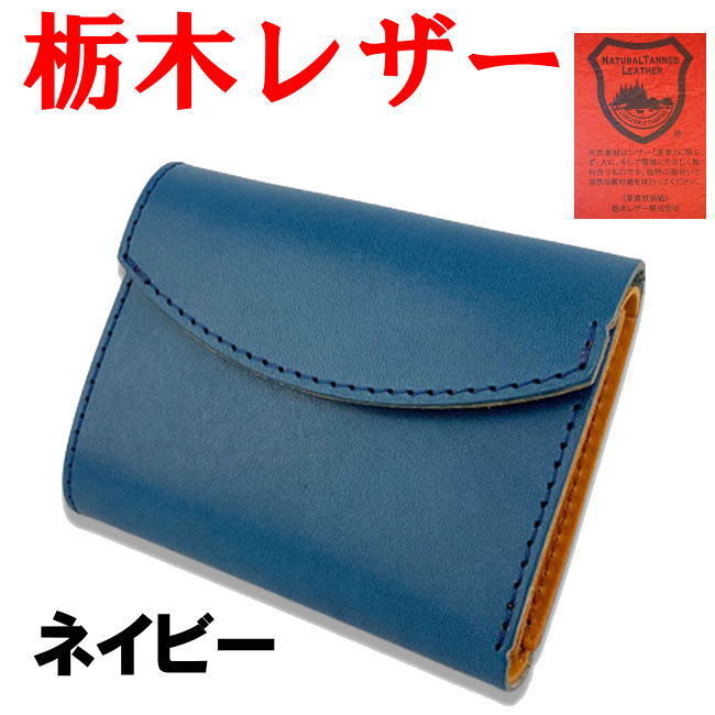 - ネイビー 紺 栃木レザー 姫路レザー 財布 三折 ミニウォレット 285