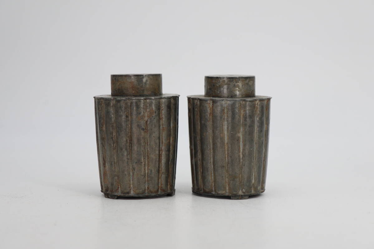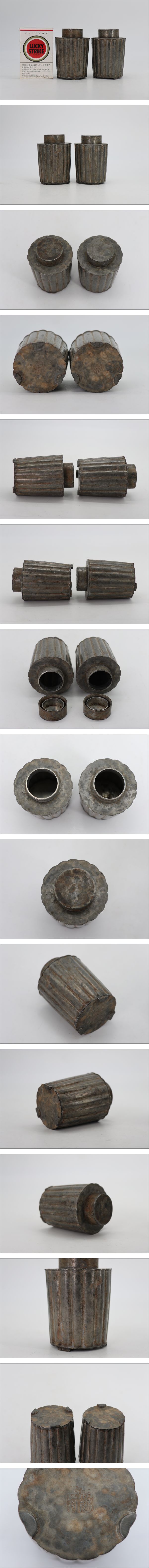 - 【潮陽長利】 唐物 古錫 茶入 一対 錫斑 時代物