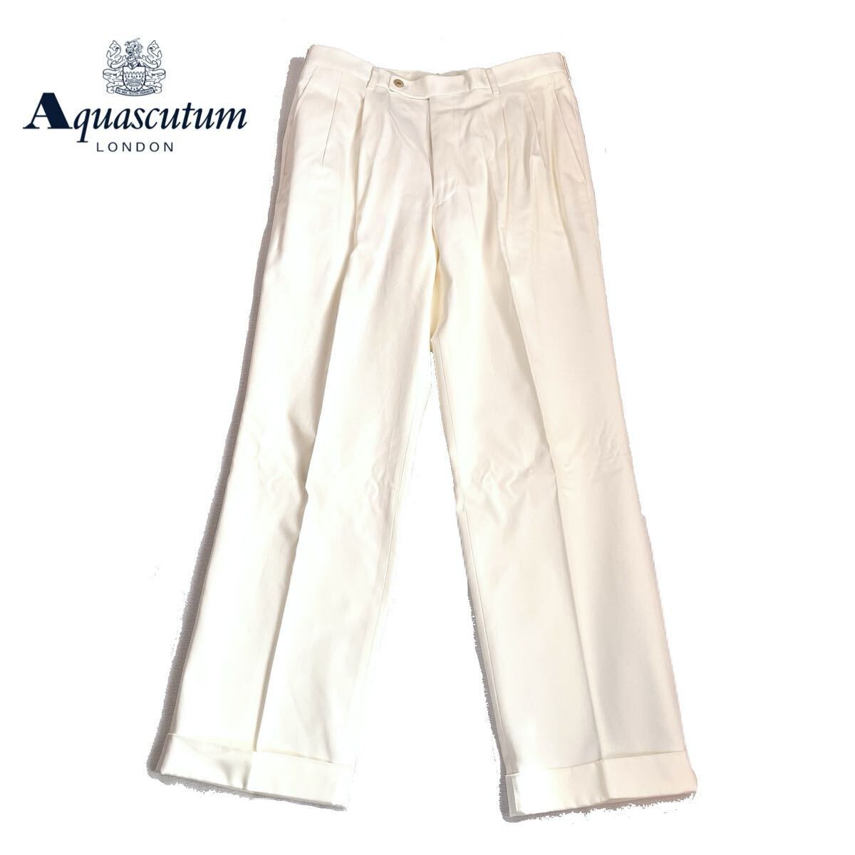 > 未使用 アクアスキュータム Aquascutum スラックス チノパン コットンパンツ 白 アイボリー 85 綿 ビジネス カジュアル メンズ