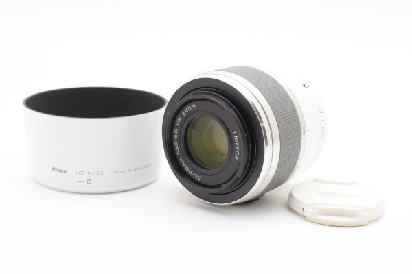 - ADS7559★ 美品ジャンク ★ニコン NIKON 1 NIKKOR 30-110mm F3.8-5.6 VR ホワイト HB-N103 フード付属