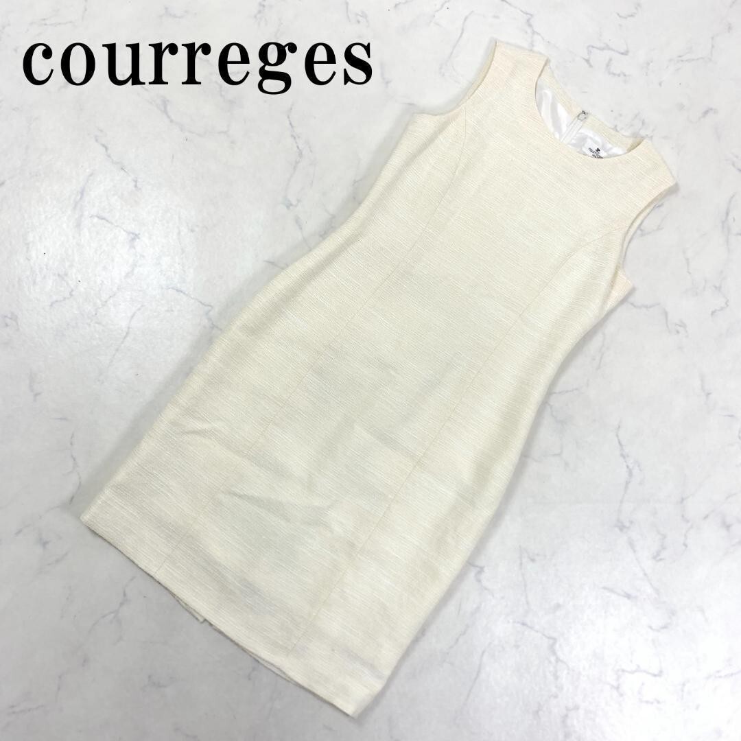 > LA7594 クレージュ courreges シルバーラメ糸 カジュアル ノースリーブタイトワンピース アイボリー レーヨン 9