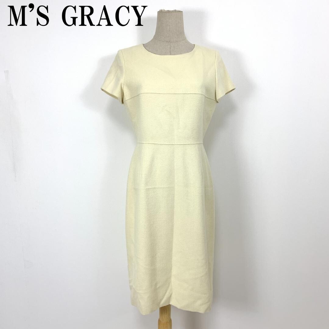 - LA7528 エムズグレイシー M'S GRACY ロングワンピース 切り替えデザインワンピース レモンイエロー アンゴラ 半袖ワンピース ベージュ 40