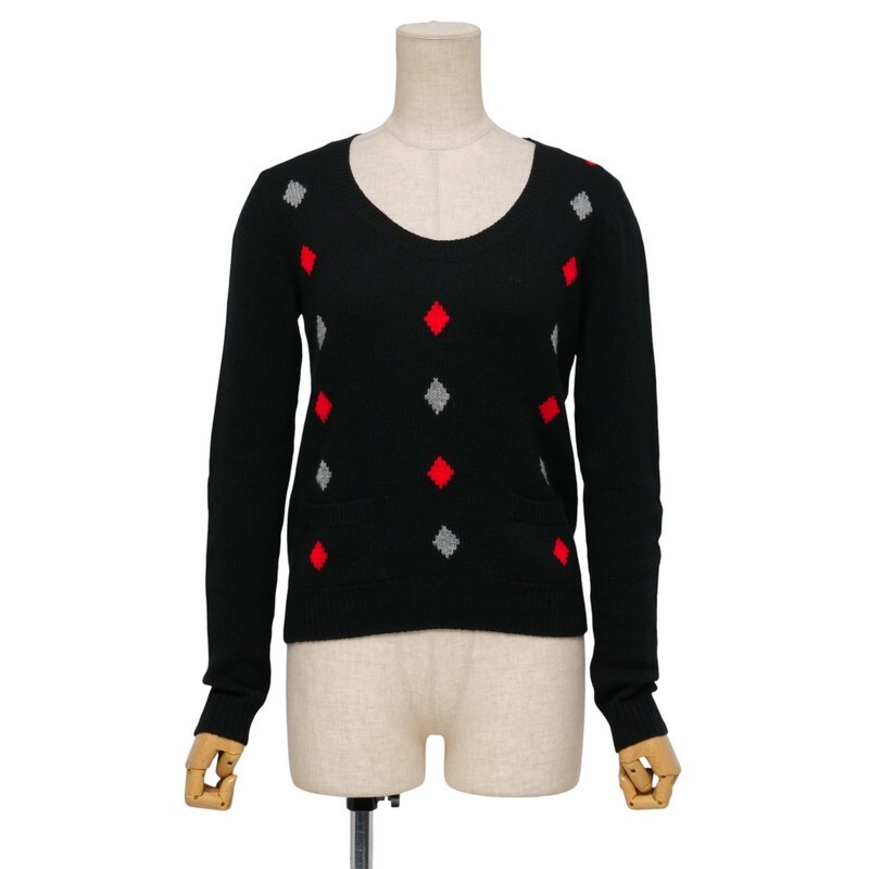 - GS3683〇イタリア製*プラダ PRADA*総カシミヤ*ダイヤ柄*ニット*セーター*サイズ36*ブラック×グレー×レッド