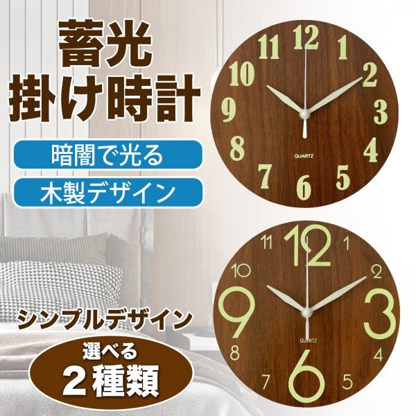 - 【新品】蓄光掛け時計 時計 サイレント 壁掛け時計 インテリア アナログ 壁掛け シンプル 夜光 木製 アナログ時計 静音 光る Aタイプ
