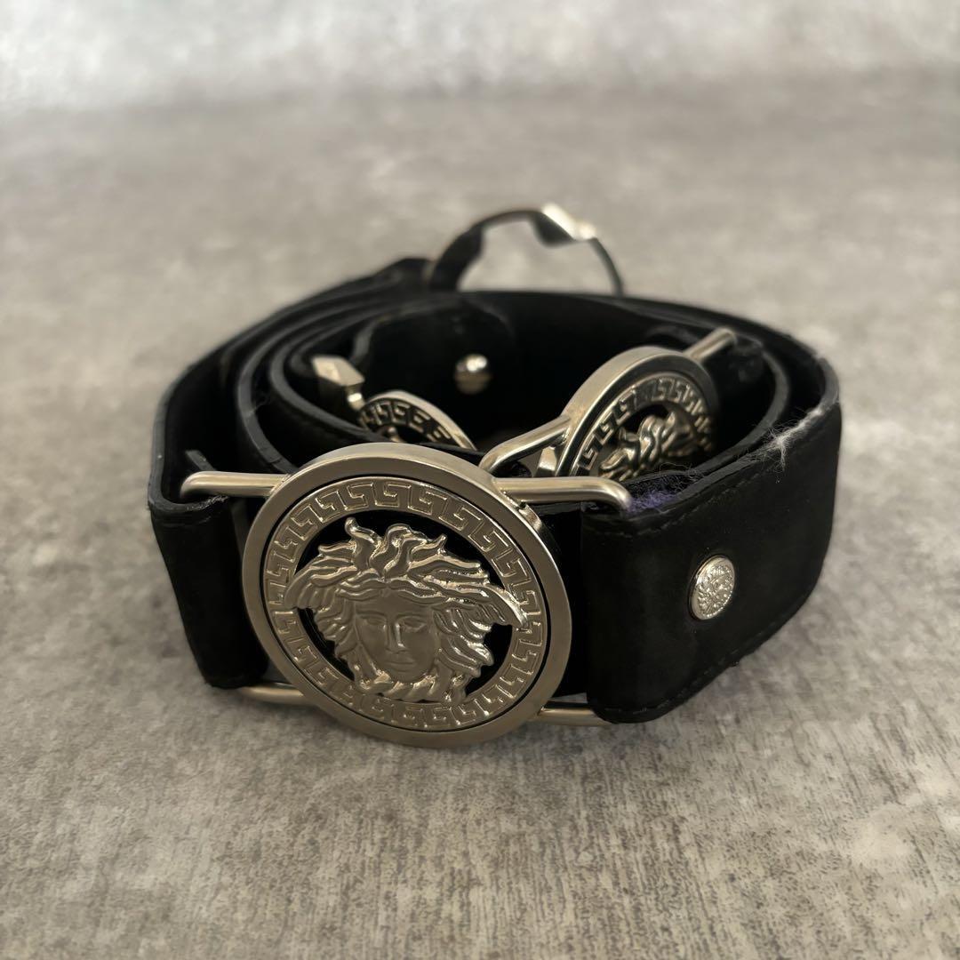- ヴェルサーチ ベルト メデューサ ロゴ ブラック ゴールド スタッズ シルバー
