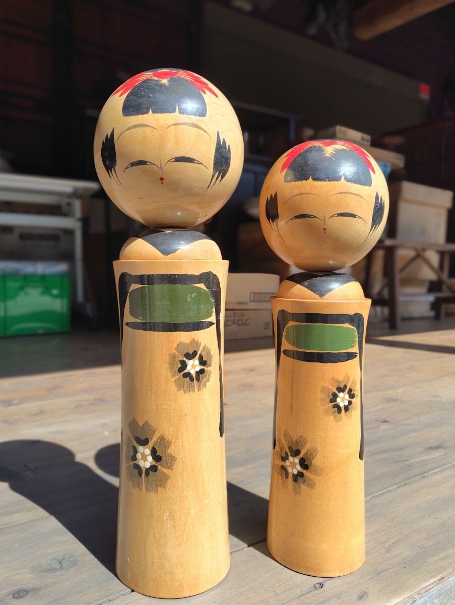 - 東北地方 郷土玩具『伝統 こけし 高さ44cm+39cm 2体「清原たかを作 サイン在り 」』 民芸品 伝統工芸 こけし 宮城 仙台