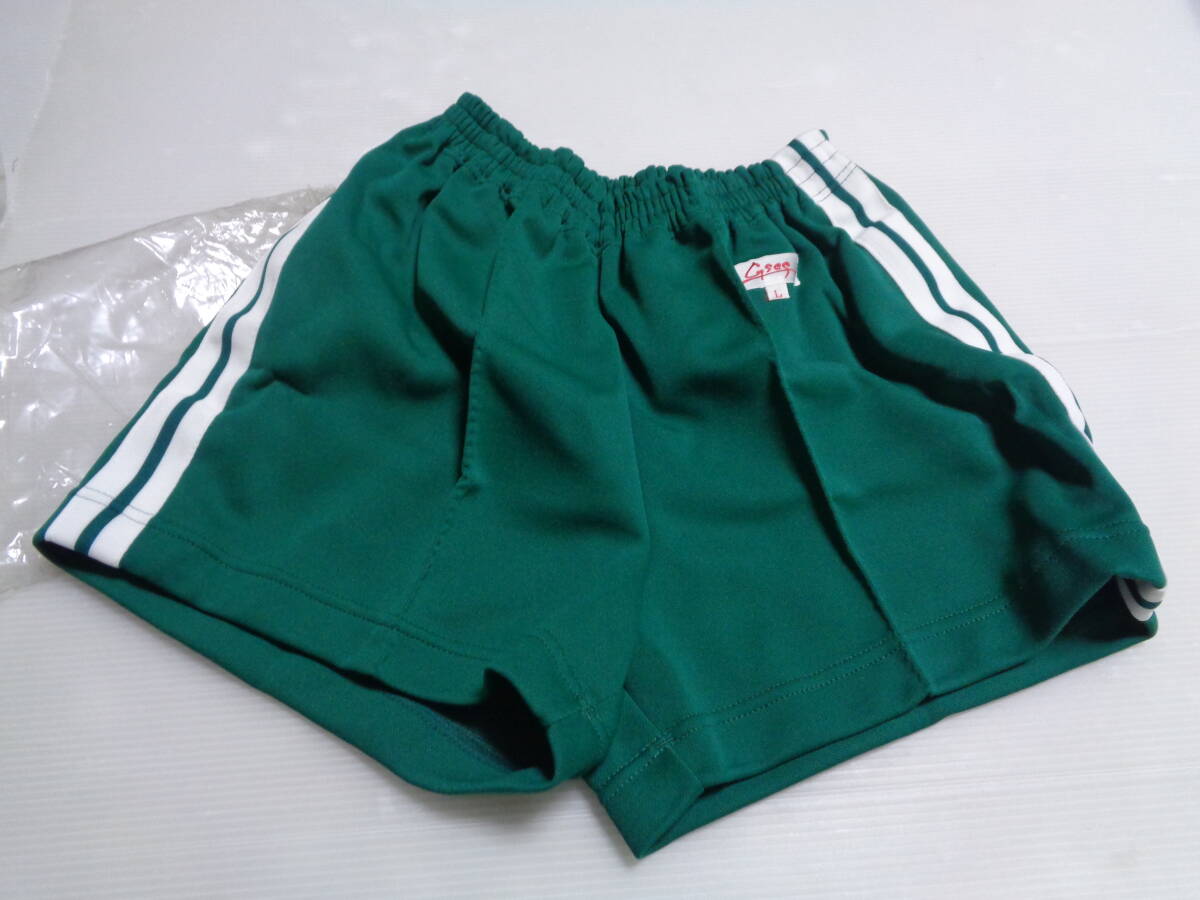 - L 緑×白 ジーses 短パン ショートパンツ 体操着 体操服 昭和レトロ 未使用