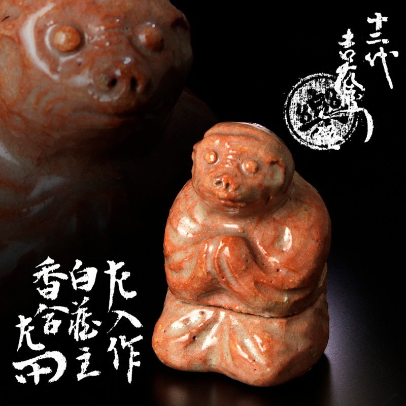 > 【古美味】六代楽吉左衛門(左入)造『惺斎書付』白蔵主香合 十二代(弘入)識 茶道具 保証品 TcS8