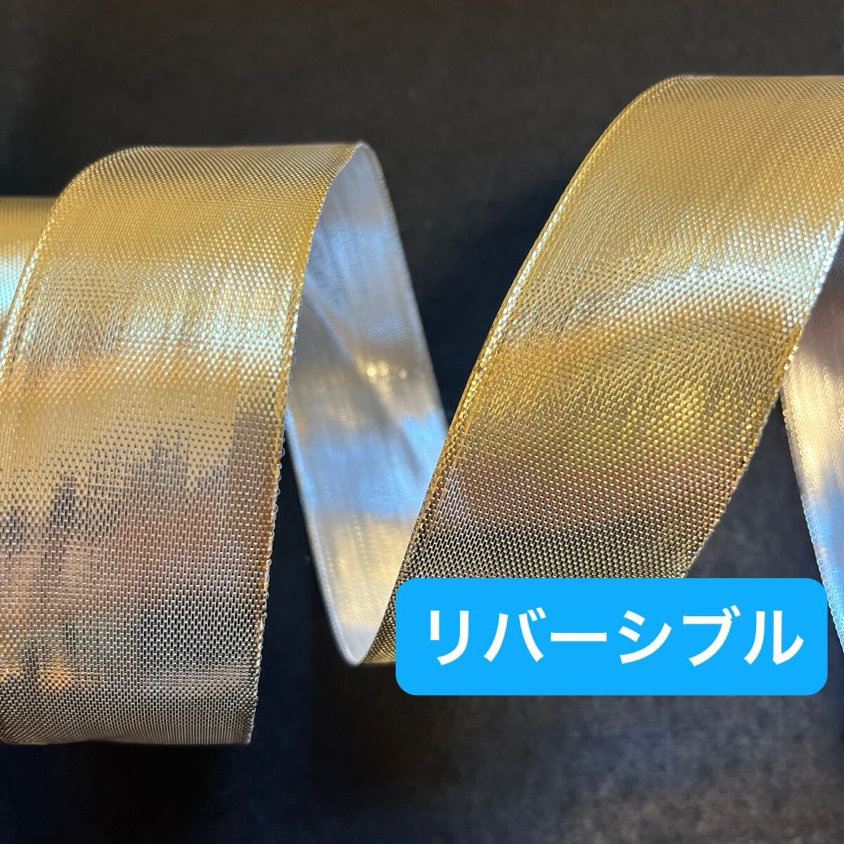 - リボン切り売り 1.5m 約3.8cm幅 ゴールドシルバーリバーシブル