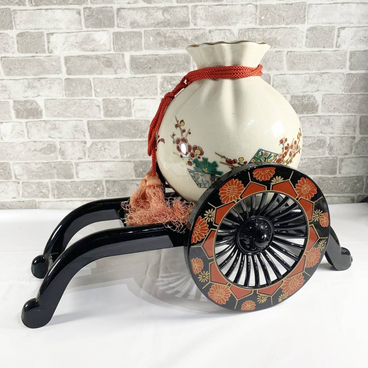 - usH-3358【九谷焼】6号花瓶 花台付き「小菊」御所車の花台 花器 フラワーベース インテリア 中古・現状品