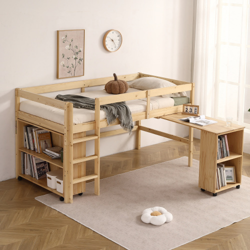 - システムベッド ロフトベッド 木製 シングル ベッド ロータイプ ベッド デスク 本棚 机付き 学習机 コンパクト 本棚付き 木製ベッ KU598