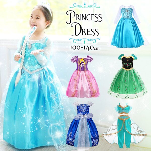 - キッズ プリンセスドレス /コスプレ ハロウィン ディズニー 衣装 仮装 ラプンツェル エルサ シンデレラ アナ ジャスミン 子供 クリスマス