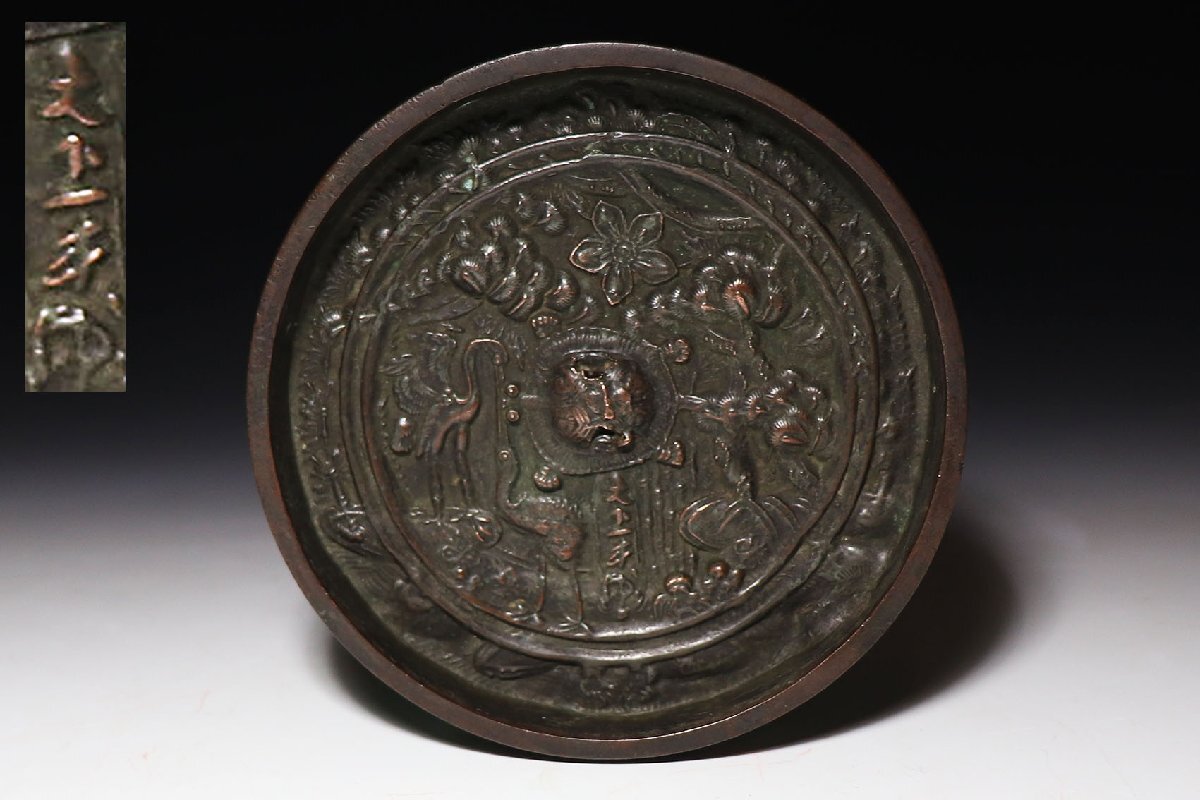 - 【桃】仏教美術:古鏡松下双鶴図円鏡 江戸期 其の弐