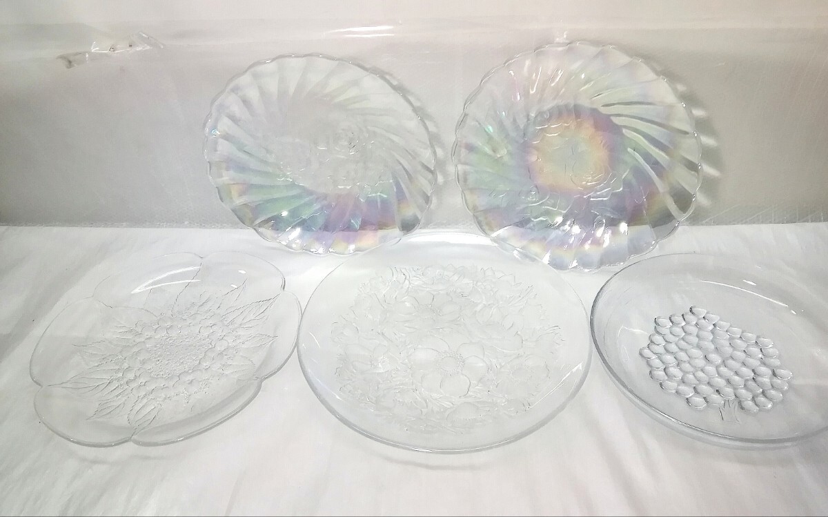 - ガラス大皿 まとめて 5枚 レインボー クリスタル ガラス皿 プレート 変形皿 ガラス食器 ⑤