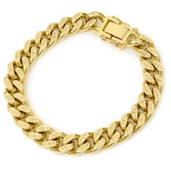 > K18 ダイヤモンド入り 喜平 ブレスレット 1.06ct 97.8g メンズ アクセサリー ゴールド イエロー YG 2面 シングル 3072446