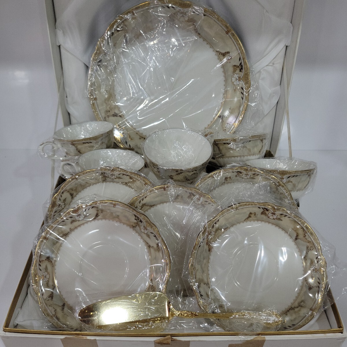 > №9284 未使用保管品 箱傷み NARUMI ティータイムセット 大皿×1 ケーキサーバー1本 カップ&ソーサー5客セット