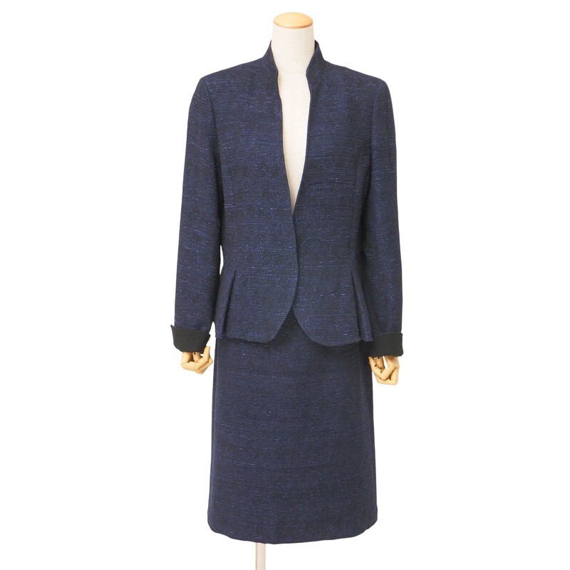 > TJ5164□ケーティー キヨコタカセ/K.T. KIYOKO TAKASE セットアップ スーツ ペプラムジャケット + スカート ツイード サイズ15 ネイビー系