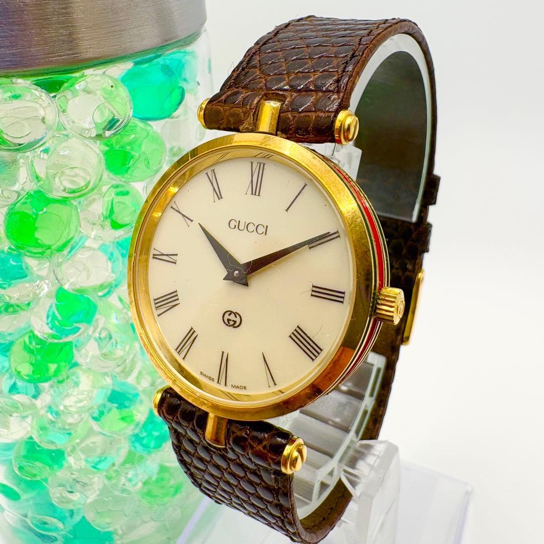 > 新品電池 GUCCI グッチ 稼働品 シェリーライン 腕時計 ローマン ラウンド ヴィンテージ 純正ベルト 純正尾錠 メンズ レディース