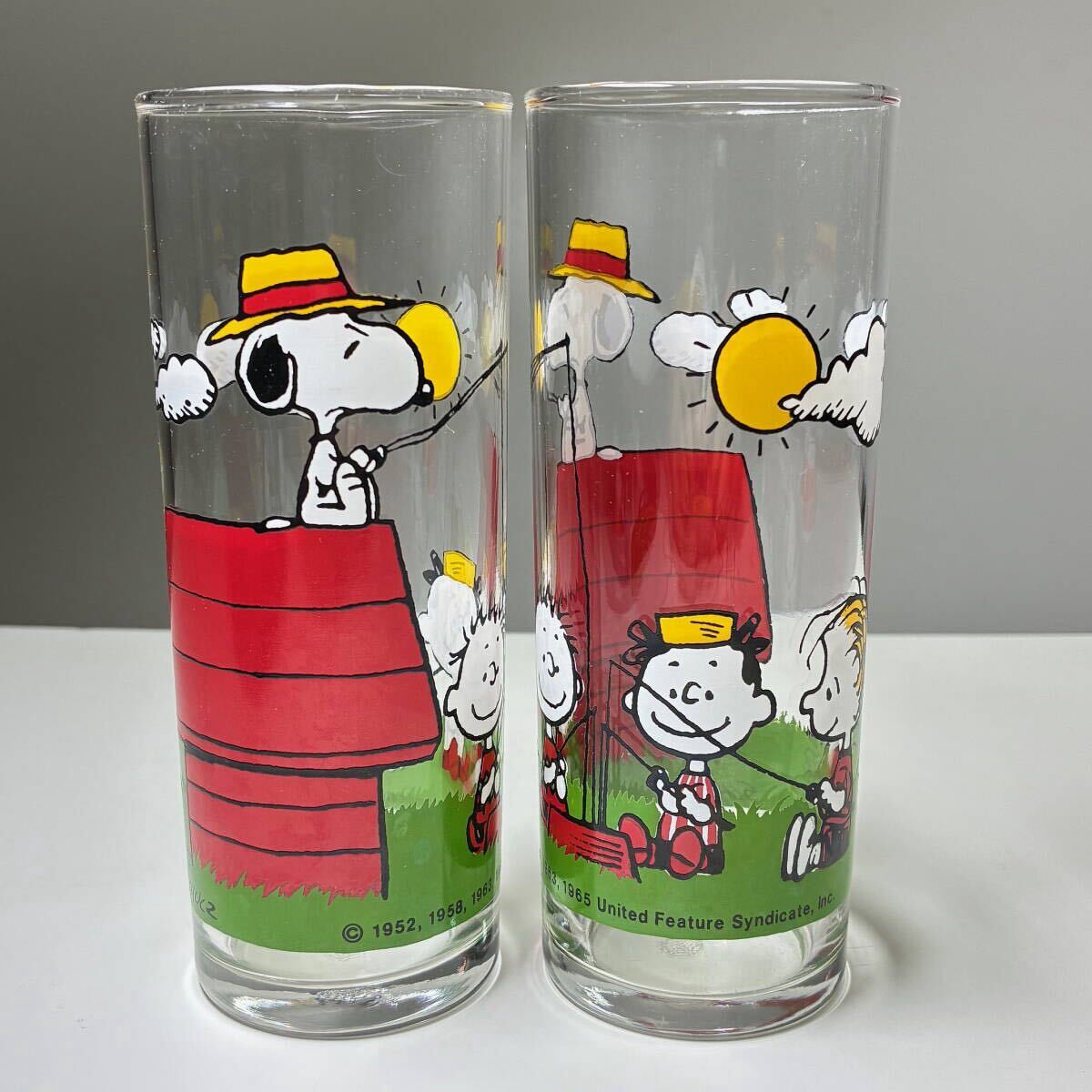 - ★レトロ★スヌーピー トールグラス 2コセット 高14.5cm★ヴィンテージ/ピーナッツ/チャーリーブラウン